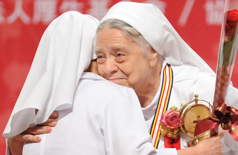 得獎時,這位80歲的老修女謙虛地說:「選擇愛與奉獻,是遵行主的旨意,60幾年來過得充實又快樂,一點也不後悔。」