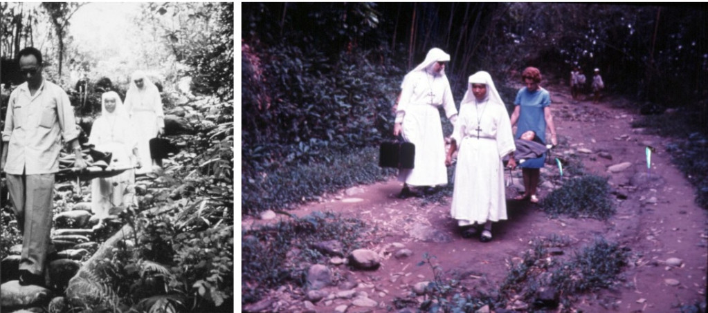 在聖馬爾定醫院,有一張老照片,照片裡一名神父和兩位修女用擔架抬著包布緊裹的小女孩,女孩本已在家「等死」。華淑芳不放棄,他們從山區一階一階地徒步下山,皇天不負苦心人,終於把女孩「救活」。
