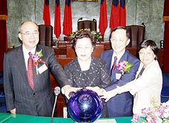 (余玲雅完成省議會檔案數位典藏計畫啟用,歷任省議員的吳伯雄、高育仁出席)
