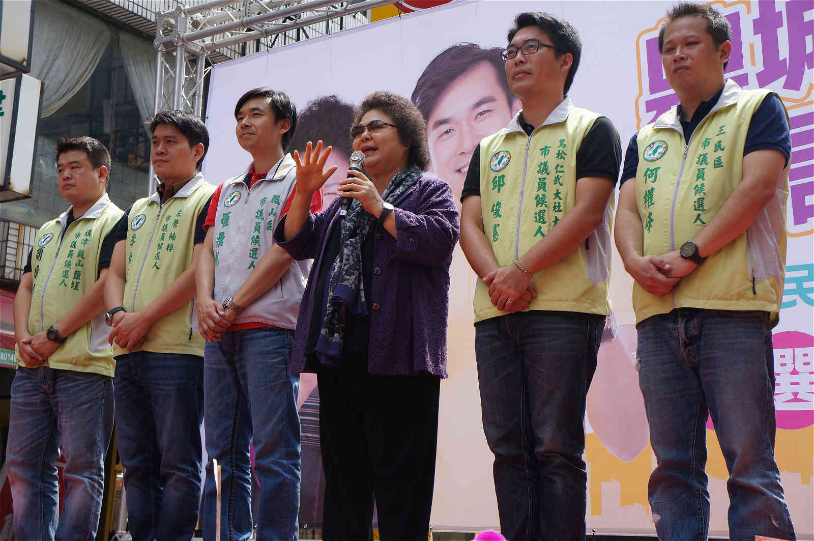 例如在高閔琳的總部成立大會上,優先安排同選區現任議員翁瑞珠與陳政聞上台,陳菊向台下千餘位支持者大力推薦翁、陳兩位議員,接著表示光他們當選是無法拼過半,在大岡山還要讓新人高閔琳一起過關才行,這樣微妙的安排,都是為了促進黨內團結與和諧,達成市議會過半的目標。
