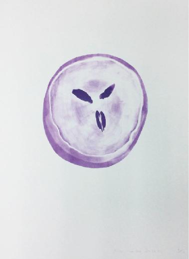 佐々木美穗子也將台灣的水果收錄當成主題,她特別詮釋其中一件名為「種子」的作品意境,「這是一顆在台南某庭院揀拾到的果實。雖然,以寫實的手法直接表現,但從剖面切入的獨特視角,令人無法忽視畫作中的三顆種子, 即便身陷於豐盈的果肉之海,仍不輕言放棄,伺機游離那已定命運漩渦的堅強生命力。」
