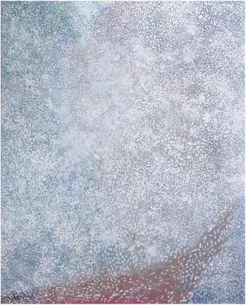 介紹起自己在台灣完成、也在台灣首展的作品,佐々木美穗子難掩興奮,也再三勾起美好的創作過程回憶。談及這幅「睫毛」創作的主題命名頗具少女俏皮感,佐々木美穗子說,畫觀音山朝霞,從她的角度看出去,染上奇異光華的弧線有如睫毛一般,她讚嘆,台灣實在非常美麗。