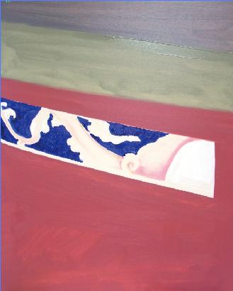佐々木美穗子足跡行至台南時,也不忘留下彩繪創作。其中一幅,「屋簷的腰帶」,把孔廟內牆壁上的圖案放大重現。佐々木美穗子感性的為她的這件作品註記,寫下心情: