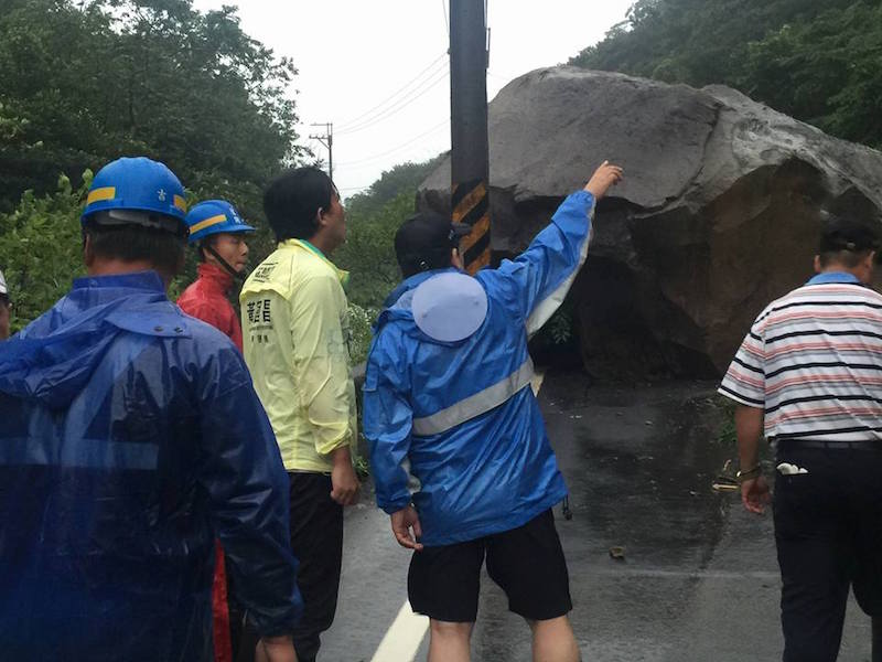 黃國昌也表示,這兩天從貢寮、瑞芳、萬里到金山的雨勢相當驚人,因此造成不少災情。其中他自己今天從汐止往返萬里兩趟,就在萬里區雙興里麗水路附近,就發現掉下兩顆巨石,所幸無人傷亡。不過目前兩側道路封閉,希望大家改道並注意安全。
