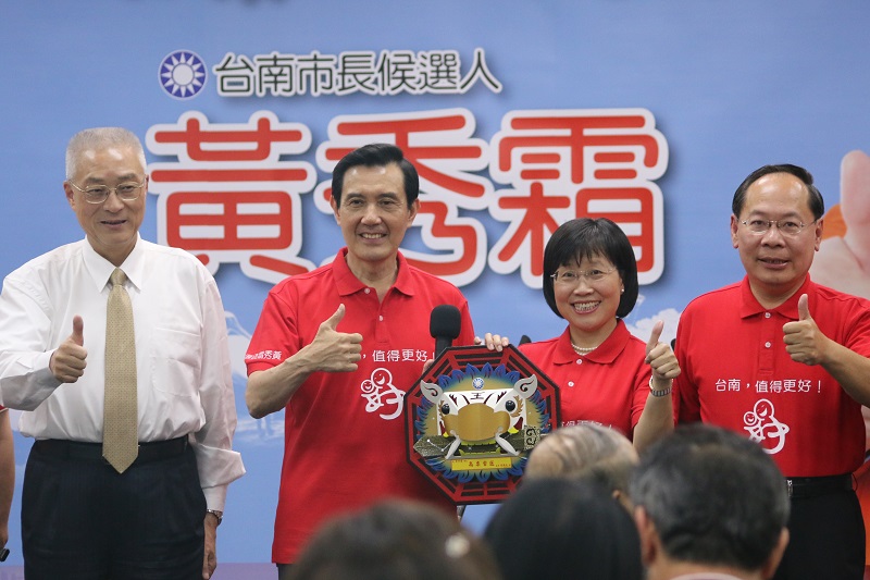 國民黨今(15)日舉行中常會,邀請台南市長參選人黃秀霜到場專案報告,黃秀霜發表政策時一度哽咽拭淚,提出要國際商港、國際機場等政見,報告結束後馬總統致詞助講,力挺黃秀霜參選,最後並當場拋出要現任台南市長賴清德接受辯論戰帖,為選情加溫。