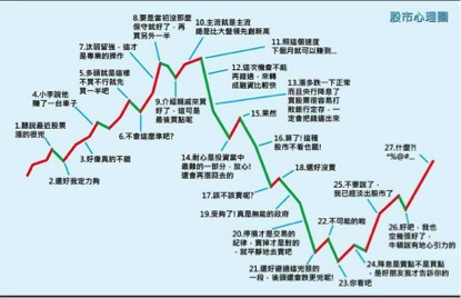許多投資人都不夠用功,急功近利,到處打聽名牌。賺到錢以為自己很厲害,其實是運氣好。盲目投資,賠錢賠到破產也不意外,因為從不知道投資的風險是否大於自己可以接受的風險。套牢就睡不好,通常買高賣低,永遠懊惱。網路上有一張常被轉載的股市心理圖,很多人都被說中了。