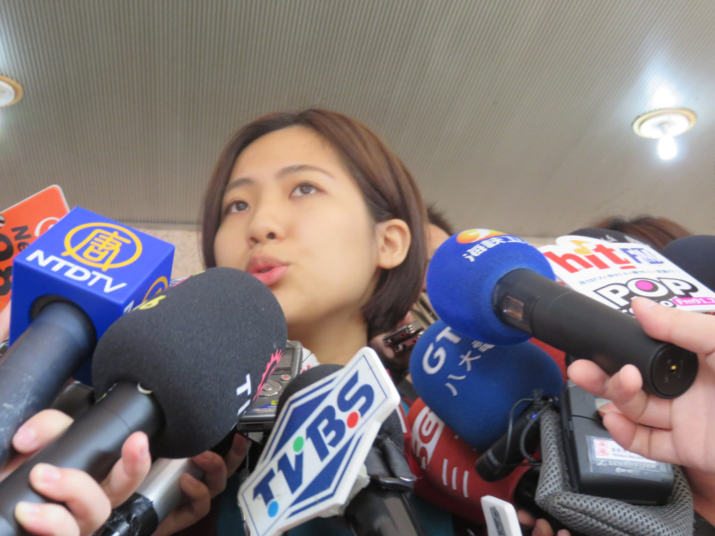 朱辦發言人徐巧芯(上圖,記者唐詩攝影)說明王如玄苗栗買農地爭議,強調沒特別獲利,也沒套利,地是王如玄公公買的,是已故作家施寄青邀約。
