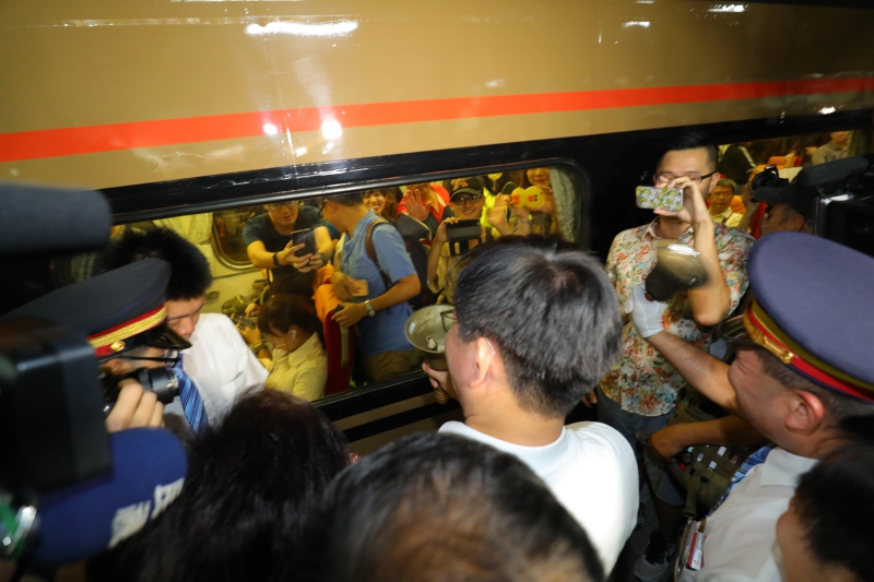 為見證這歷史性的一刻,林市長在豐原台中花都藝術節開幕夜行程結束後,火速趕往現場,與站長在第8節車廂搖鈴揮手歡送最後一班自強號150車次北上列車。看到150車次列車進站,數百個鐵道迷紛紛拿起相機或攝影機,紀錄下這歷史畫面,甚至全家大小都一起出動,與火車站長合影留念,向舊火車站說再見。