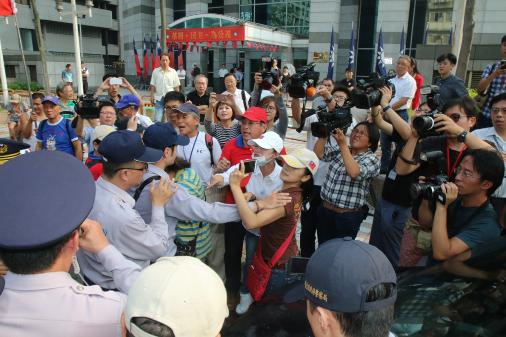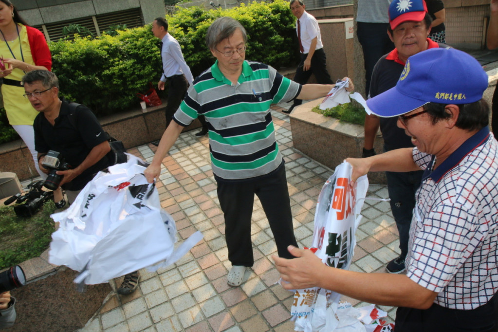 台聯一到場,即和守在國民黨黨部前的愛國同心會成員狹路相逢,愛國同心會總幹事張秀葉對著台聯組織部主任張兆林嗆聲,「來這邊鬧什麼場啊,要鬧到日本去鬧啦,這裡是中華民國」,其他成員也大罵「回日本去」、「日本雜種」,雙方爆發口角,甚至激烈推打,氣氛火爆。