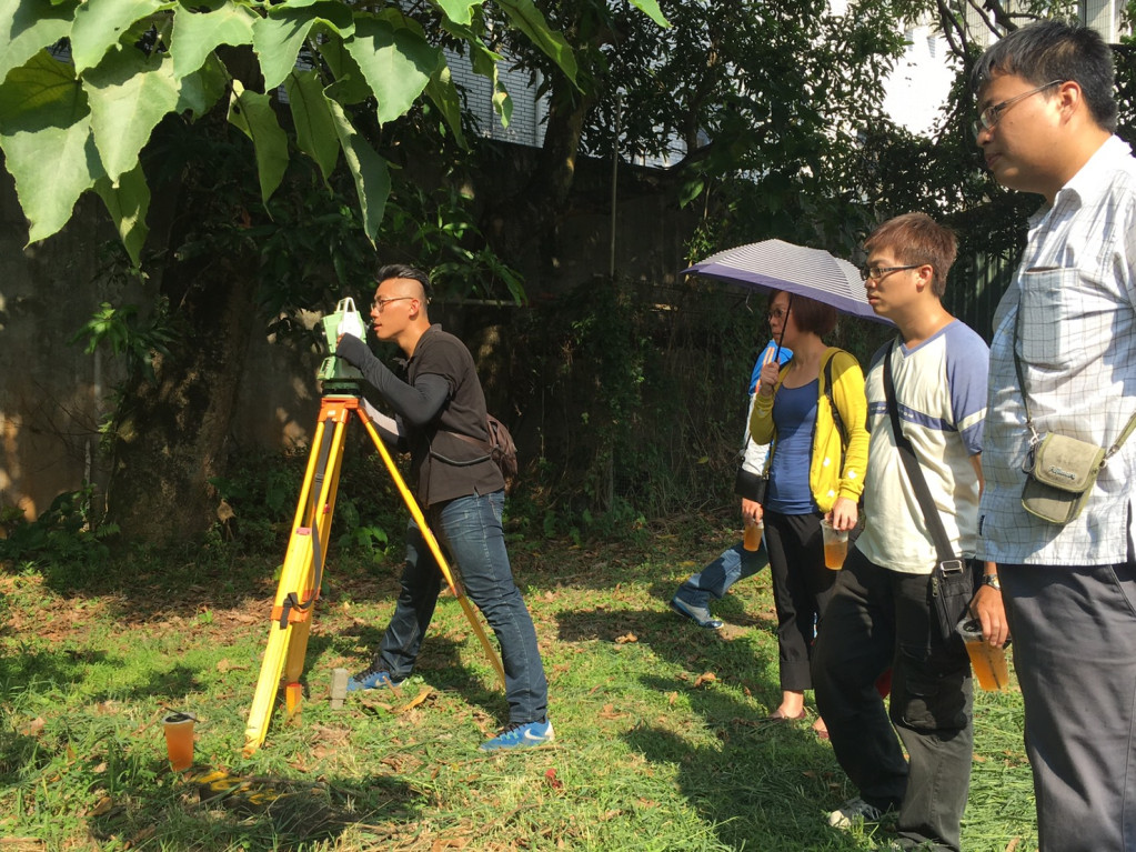 圖:交通部、文化局人員今天進行土地鑑界丈量作業,正式接手歸還的「國有土地」。(王志偉攝)