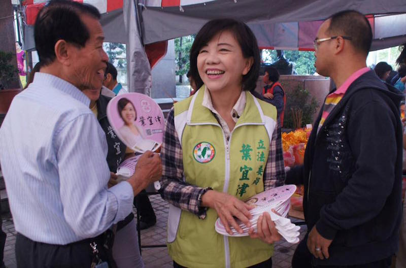 立委葉宜津廣為散發扇子爭取支持。圖/取自臉書