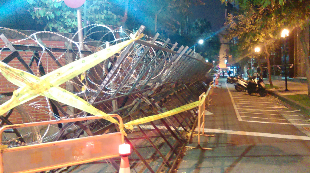 行政院血腥鎮壓事件屆滿周年,黑島青重返立院,大批警力拒馬蛇籠也重回現場(記者林冠妙攝)