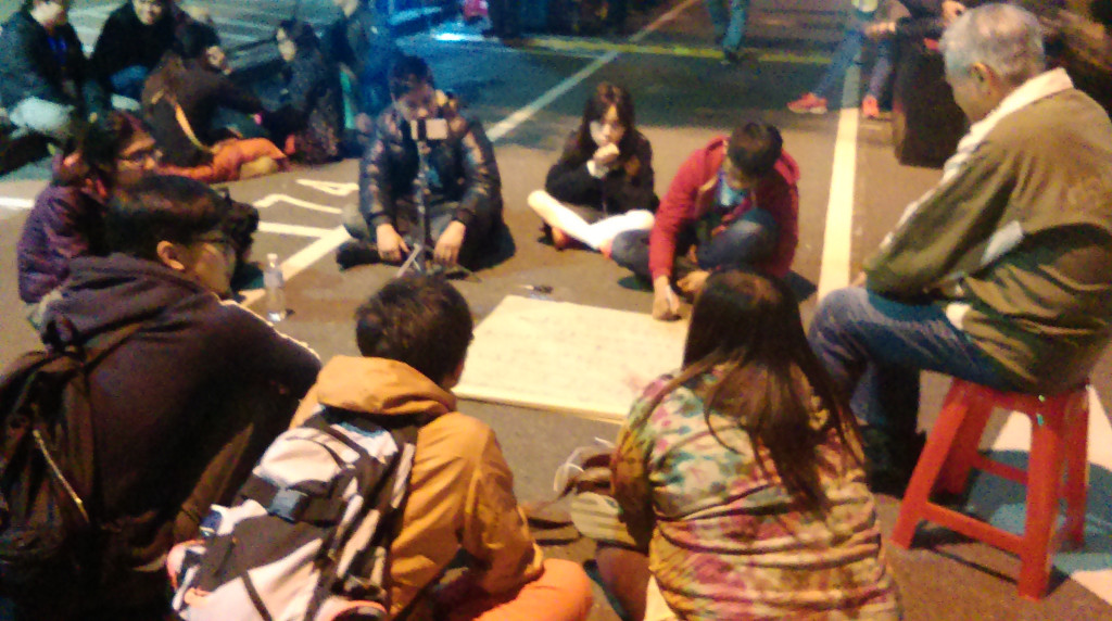 323政院暴力鎮壓事件周年前夕,黑島青重回立院守夜,舉辦跨夜的公共論壇。(張龍僑攝)