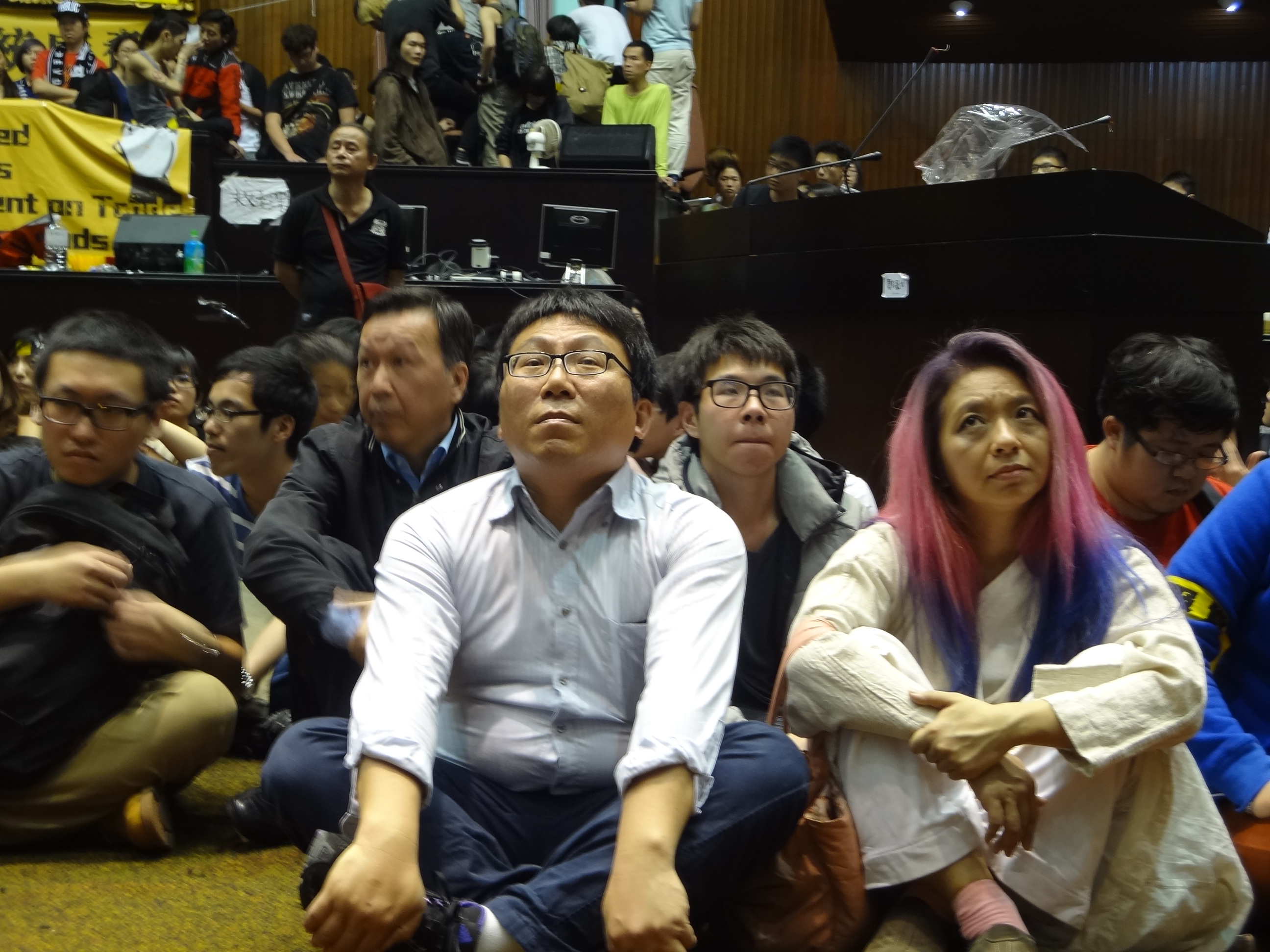 學生反服貿佔領立法院議場行動進入24小時,立法院外聲援民眾及學生大量湧入,19日晚間立院旁濟南路及青島東路交通完全中斷,周圍聲援民眾人數約1萬5千人,金曲歌手許景淳也現身立院,並在現場演唱《美麗島》為學生加油。