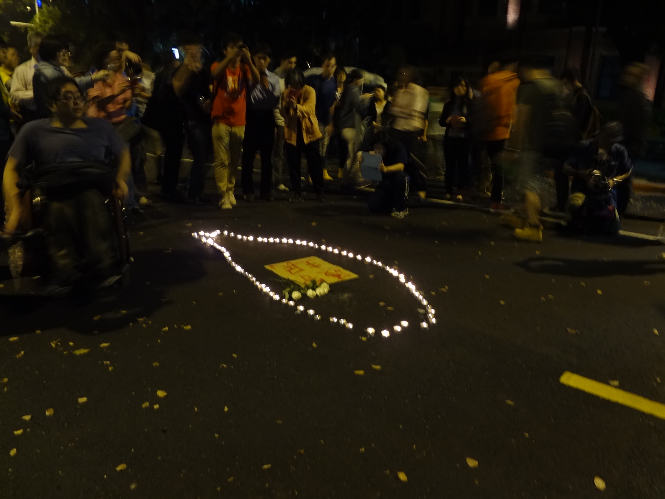 中山南路的大門口,則有上千民眾聚集在此,包括反核、台獨等各種不同主張的街頭運動常客也一併現身,年紀較大的民眾站在外圍,學生模樣的抗爭者則在內層聆聽演講。