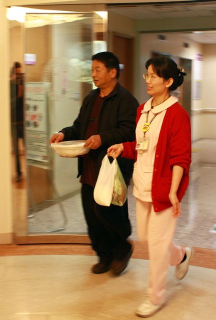 礙於我們病房的廚房設備不是十分齊全,年年小館的老闆需在餐廳的廚房裡將魚頭先處理、又油炸過,並與其他配料整齊地擺在沙鍋裡,再端到病房裡來。因為聯絡方面的某一環節出了小狀況,因此進度稍有耽擱。而在等待的期間,大家深怕病人餓肚子,頻頻問他餓不餓,他都很有耐心地說:「還好;不餓!」但是,體貼的陳太太三不五時就會塞塊小點心,讓先生先行充飢。鶼鰈情深,令人感動,卻也叫人為他們即將面臨生離死別的命運而扼腕。