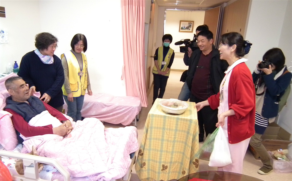 一陣簡單的寒暄過後,病房裡所有人的眼睛都緊張地注視著瓦斯爐上頭的砂鍋;陳先生當然也不例外。有人開玩笑地說:「看!陳先生的口水都快流出來了。」換來眾人一陣哄笑,陳先生也不介意地跟著笑了起來。