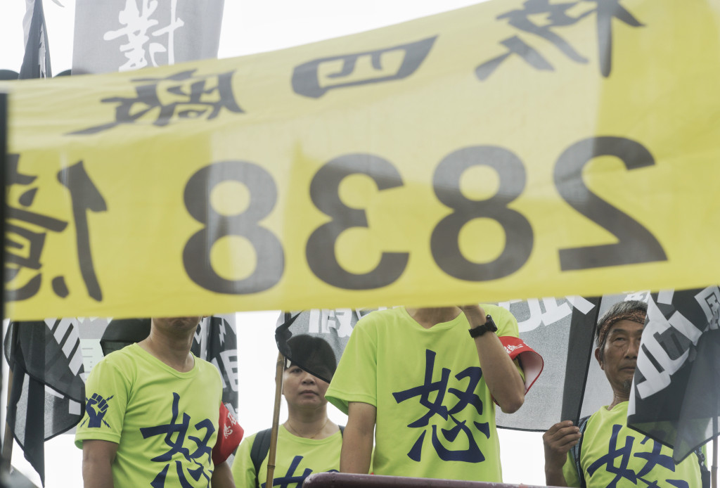 台電員工為反對立院將修《電業法》, 5日起發起「全台南北串連步行活動」,今(19)日抵監察院外聚集抗議;對閣揆林全昨天不滿風災後水電復原進度,稍晚雖然政院以「同理心」為由澄清,不過大批身穿「怒」字綠上依的抗議群眾仍高喊「院長失言、還我尊嚴」。