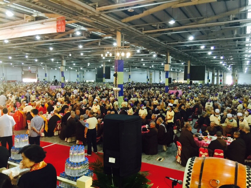 這場全國供佛齋僧大會由台中市三寶護持會主辦,由多位高僧長老灑淨、主法。副總統吳敦義、林佳龍市長、市議員曾朝榮、沈佑蓮及市府警察局長蔡義猛等人與會,現場有6,000位法師一起誦經祈福,共同祈求國泰民安、風調雨順。