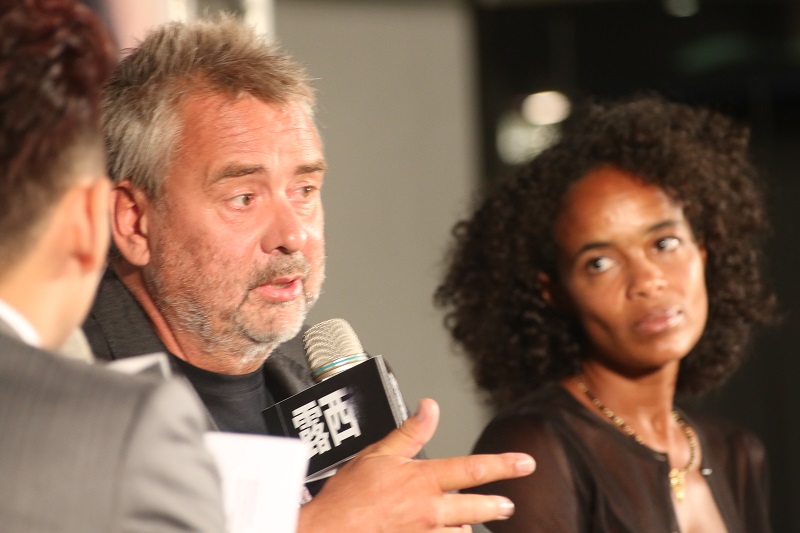 訪問到一半,盧貝松還客串起記者,問身旁的妻子兼製片人,對於與導演一起工作的看法,妻子維吉妮亞‧席拉笑著拿起麥克風欲言又止,盧貝松還做勢摀著耳朵假裝聽不見,搞笑功力不俗。