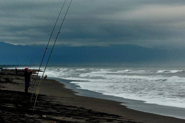 蕭瑟的東港海邊,最適合觀察宜蘭人的守護:龜山島,從這裡看到的龜山島最像一隻靜臥在太平洋的大龜,尤其看著太陽從龜山後昇起更是美,蘭陽八景的龜山朝日即是其一。 清晨五點的東港仍是黑燈蝦火,到得海邊時十幾根釣竿已是排排站,耐心的釣客守候魚兒上鉤,黑夜天空隱約看得烏雲在天,開始耐心的守候著日出,心情就如同那幾個釣客,希望有著意想不到的驚喜;當海平線出現天際開始變亮,滿心期待雲彩轉為橙紅,一輪紅日從海平面緩緩升起;等得近個把小時太陽仍遮遮掩掩的羞於露臉,讓今日的日出只能給同情分。