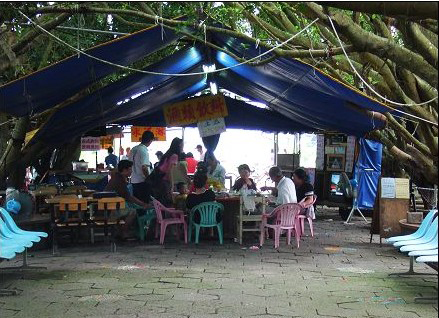 攤販在下面搭棚子,不但賣快炒還有卡拉ok可以唱