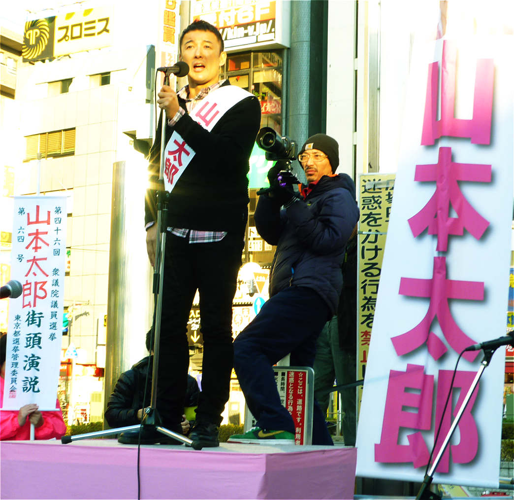 從日本的例子也可以看出,像在2012年眾議員選舉,雖因小選區制度的致命缺陷而導致許多廢核小政黨無法出頭,明知無望,選民還是投了,許多廢核票成死票,但證明廢核票過半數,也對當選的人發生相當箝制作用,日本也才能至今幾乎都沒真的重啟核電 (只曾重啟的大飯核電2爐),即使費盡九牛二虎之力想重啟鹿兒島縣的川內核電,重視民意的安倍也不敢出面保證,民意發揮了最大的作用。(下圖:2012大選時,反核男星山本太郎想阻止推進核電的自民黨回歸執政,但要扭轉大局不易。劉黎兒攝)