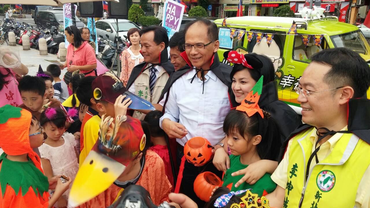 民進黨新北市長候選人游錫堃今(26)日下午在立法委員高志鵬、新北市議員李余典、鄭金隆、陳啟能、李坤城、新北市議員參選人邱婷蔚陪同,一起參加由三重總部舉辦「萬聖加游、新北光榮」活動。游錫堃表示,未來將會把新北市建設為「兒童的夢土」,舉辦很多國際性的兒童藝術活動,讓新北市小孩都能快樂的成長。