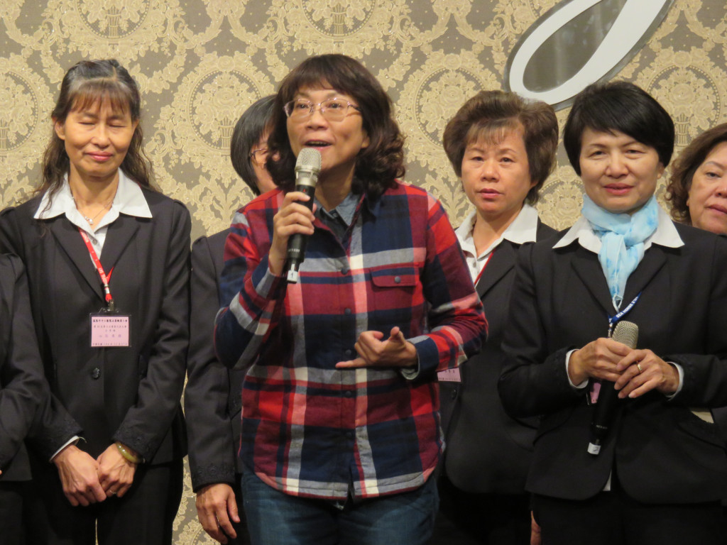王如玄致詞時向工會幹部問候,並表示來到這個地方感覺像回娘家,她每年都有來;她說,今年和去年不一樣,今年來的壓力比較大,大家看到她這兩天真的很辛苦,實際上就像當年她去做主委一樣,「老實講我律師的日子很好過,真的平平安安地過」。