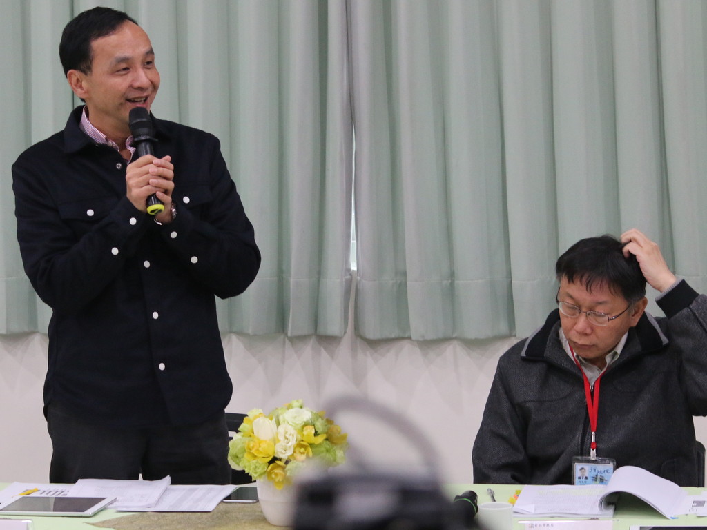 朱立倫致詞講到台北市,柯文哲搔了搔頭,似乎並不認同。