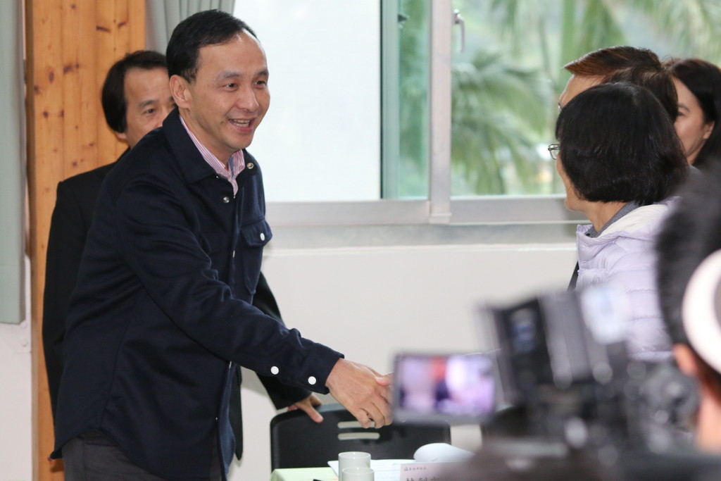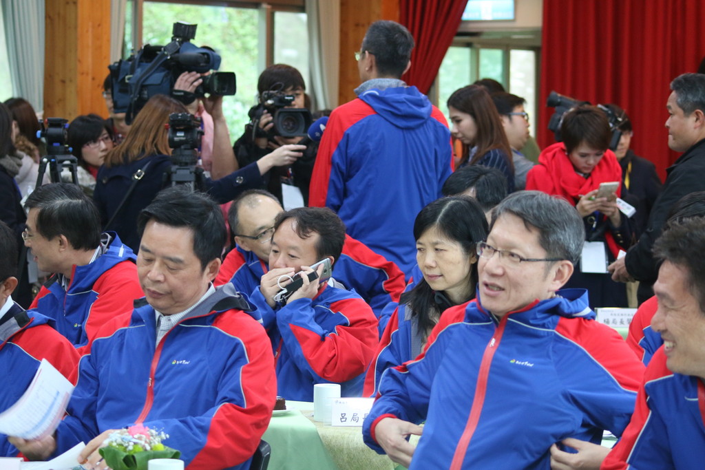 朱立倫到場時先與北市府官員握手,此時柯文哲逕自到位子上坐下。