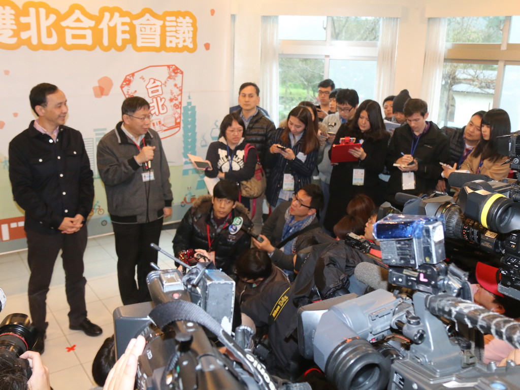 雙北論壇結束後,不到5分鐘的快閃記者會。
