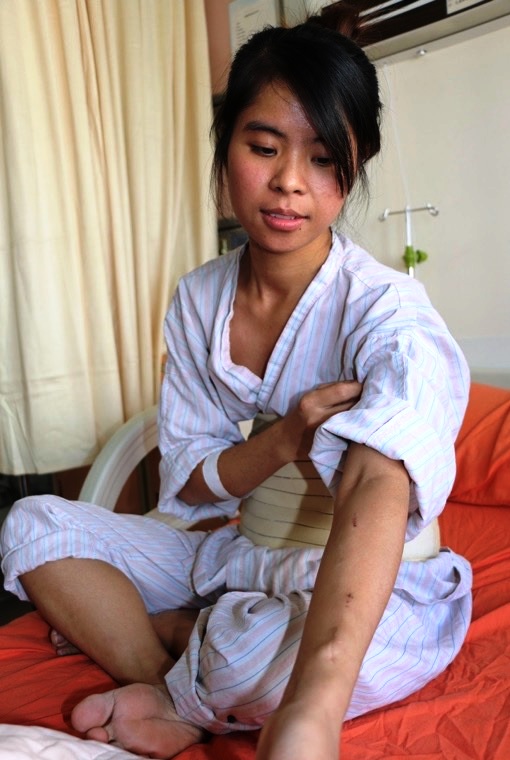 「很感謝父親生我養我,沒想到這次生病,又讓父親養了我一次!」24歲的越南籍女子裴氏鸞望著父親,哽咽的說。來台工作6年,去年4月,裴氏鸞因為經常性的全身水腫,被醫院判斷為腎衰竭,必須一輩子洗腎。台北醫學大學附設醫院評估,裴氏鸞在台灣因工作有健保,若回到越南,勢必無力負擔龐大的洗腎費用,因此安排裴氏鸞的父親來台捐腎,八仙塵爆後所成立的蘇家陞器官捐贈基金也致贈20萬元慰問金,協助裴氏鸞一家人度過難關。