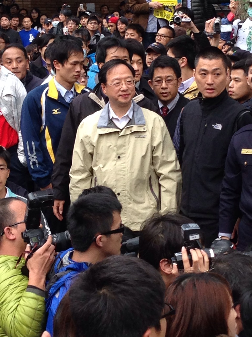 反服貿運動進入第十天,立法院外已有群眾當眾焚燒江宜樺的教科書等著作,行政院發言人孫立群今天轉達院長江宜樺的看法表示十分遺憾,並指出行政院為全國行政中樞,遭群眾占領以致癱瘓,或重要公文外流,後果不堪設想,因此警力驅離是「痛苦但不得已的決定」。