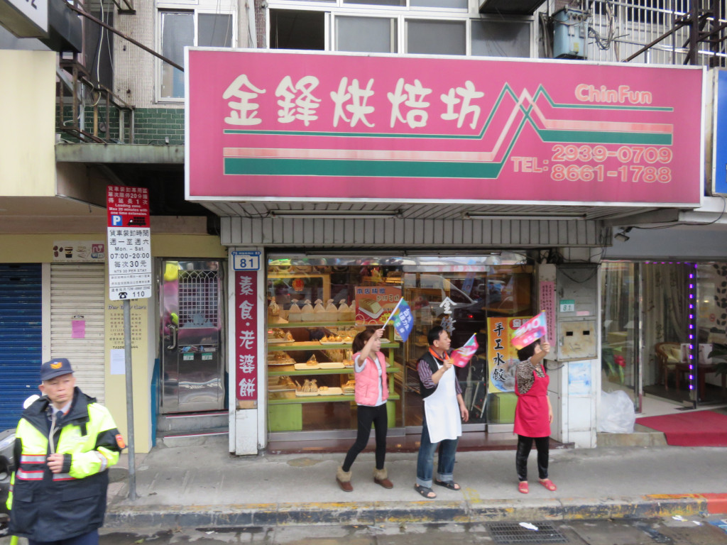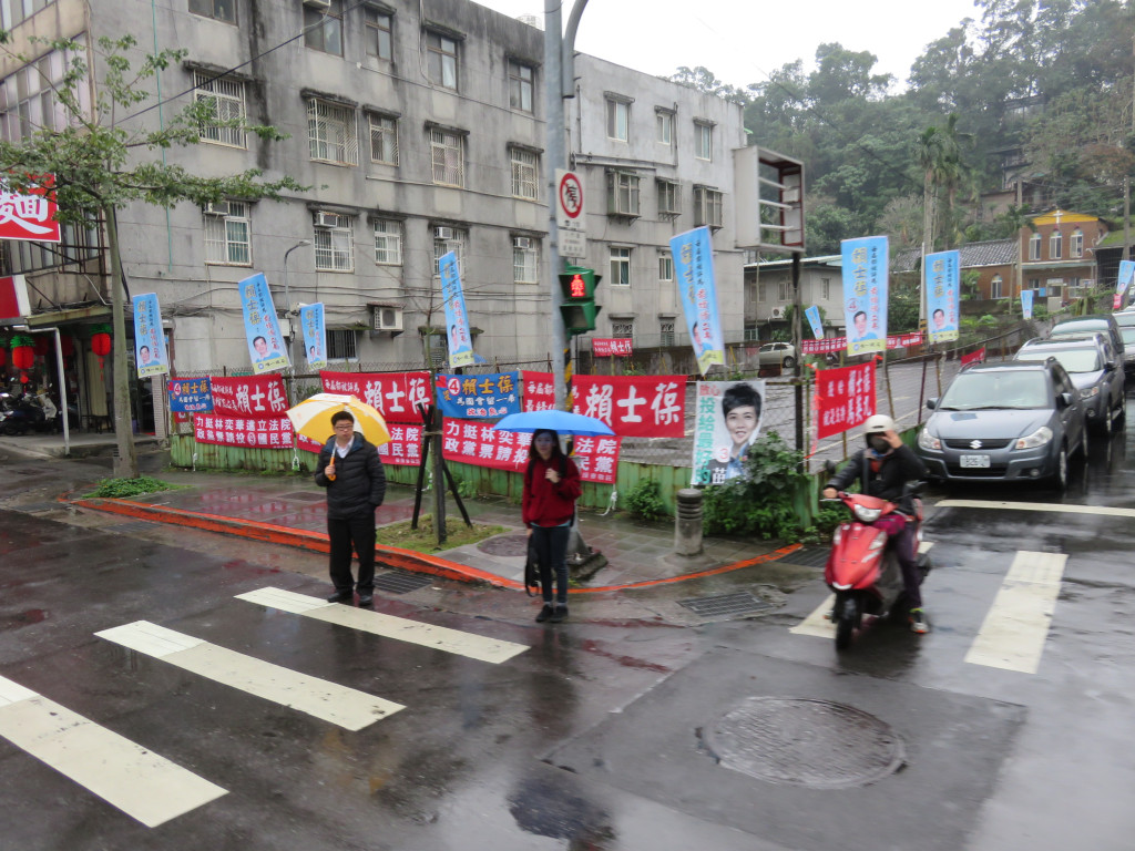 車隊行經木柵路、興隆路旁,不時可見一旁的紅色布條「支持賴士葆就是支持馬英九」,但這並不是攻擊性的文宣,而是賴陣營後援會的催票手法,尤其是在秀明路、興隆路與馬英九的老家附近更是密集,儘管天空雨勢不斷,但深藍選區對朱立倫而言還是有相當的溫度。