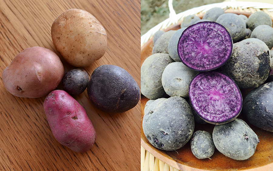 ・紫色馬鈴薯的味道更加豐厚濃郁有個性,富含花青素(右)。