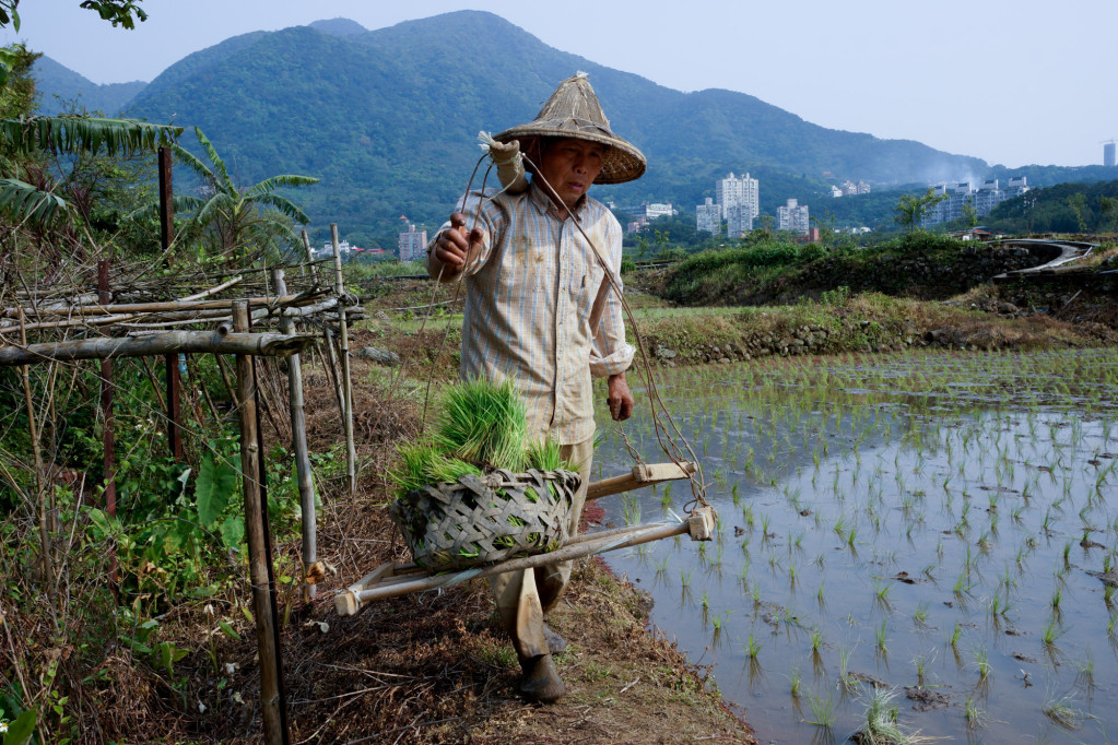 我簡直不敢相信,已經是21世紀,還能看到農人用他的雙手,一株一株的將秧苗種在水田上,而且,竟然還是在淡水!山的淡水!