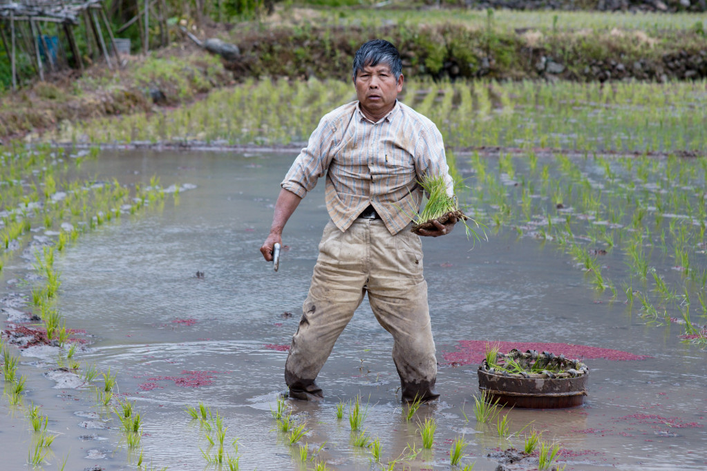 歐吉桑有五分多地,他要花將近一整個星期的時間才能插完秧。為什麼不請插秧機來播田呢?七十多歲的歐吉桑說:『老人工嘛!工錢自己賺!』