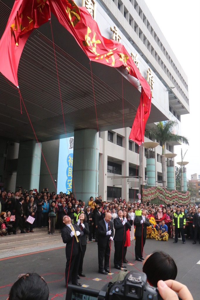 宣誓典禮在市府大樓地下二樓大禮堂舉行,鄭文燦先行宣誓後,再上樓到市長辦公室象徵性批下第一份公文供媒體拍照,再趕回地下二樓主持一級主管宣誓就職,然後到一樓大門主持升格揭牌儀式,再到市府廣場外舞台發表就職演說,由於動線混亂,管制失當,民眾與記者推擠成一團,也引來不少口角磨擦。