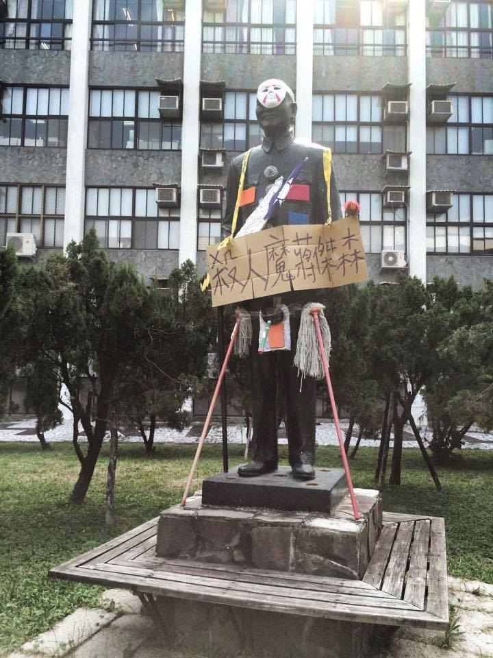2015年228前,輔仁、陽明等多所大學串連推動「無限期支持-全台裝置藝術"蔣"」行動,在蔣介石銅像上潑紅漆、貼上「殺人兇手」、「為亡靈懺悔」、「勿忘228」等字眼。