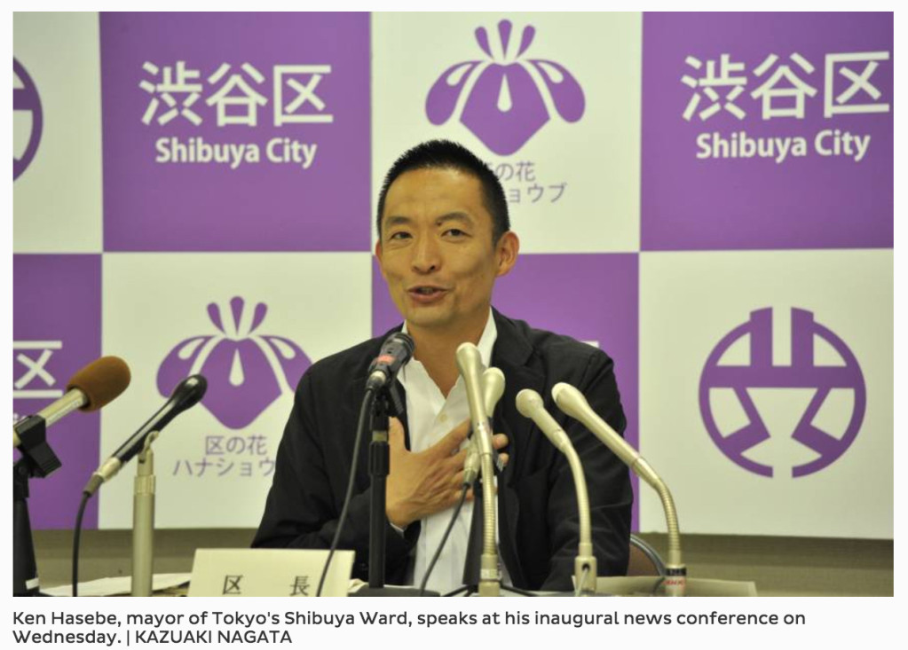 也就是地方政府不斷用行政命令或地方議會通過條例方式來突破國家法律的不周全;澀谷區甚至設有LGBT課(「推進男女平等活性城市課」)課長是出櫃的41歲的男同志永田龍太郎,因為身為彩虹族才能更理解彩虹族需要什麼樣的行政服務,永田過去也曾在廣告公司等工作,在今年9月擔任現職前是在GAP工作,他在GAP是告白自己是同志,他的上司或同事也有彩虹族,而他在2012年知道GAP在美國也是對LGBT非常積極的企業,因此2013年在日本GAP也非常積極主導跟LGBT相關活動,因此對於如何促進彩虹族的福利及行政支援很有經驗。