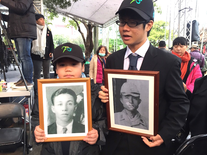 日本中央大學校長酒井正三郎率團出席二二八紀念活動,他們手捧在二二八中受難的台籍中央大學校友遺像,引起民眾關注。圖/朱蒲青攝