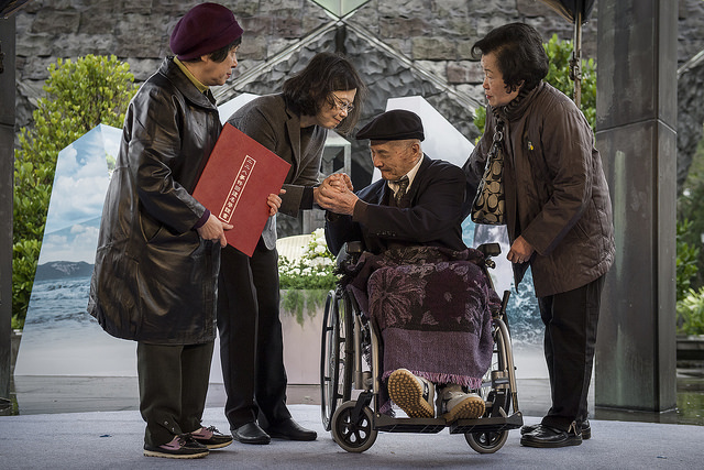 「七十年了。在場的受難者跟所有的家屬,都歷經了漫長的等待。我要再一次,向各位表達我最誠摯的慰問。」