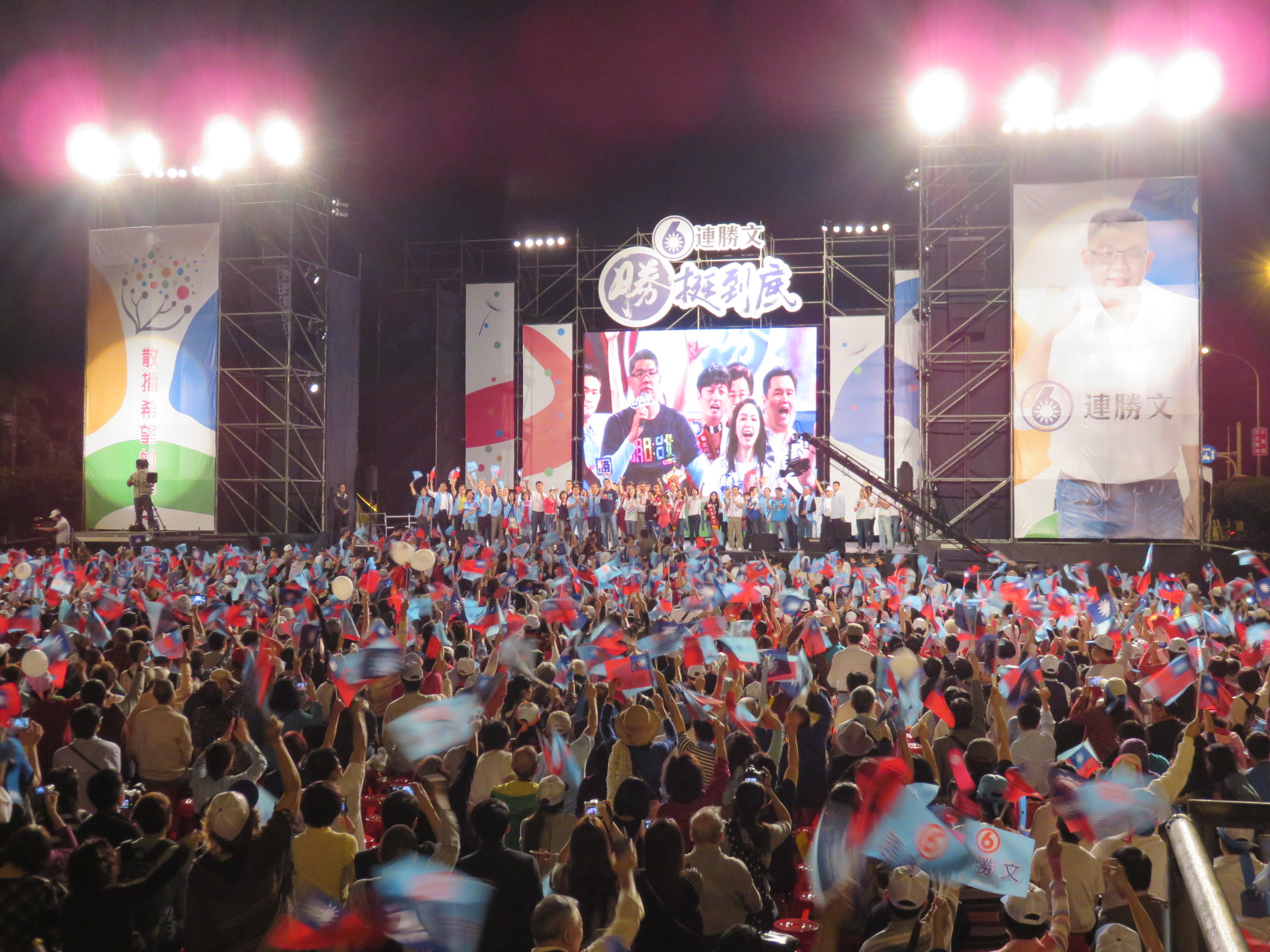 連勝文說,這條路不管走得多麼辛苦,走得多麼痛苦,「我們一定會勝利」,「請你相信我,悲觀的人總是在機會中看見挑戰,樂觀的人卻是在挑戰中看到機會,各位,你們就是我的機會」,「我擁有了你們,就擁有了勝選的機會,你們手中掌握了國家命運、未來,這個禮拜,就由上天的力量,我們全力爭取勝利」。