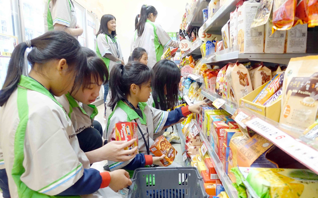 禮儀訓練後,開始教導孩子們如何點貨、檢查商品的有效期限、整理貨架.....