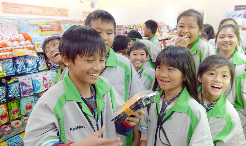 「水、糖果、冰淇淋、茶葉蛋……」孩子們爭著回答。屏東縣長治鄉全家便利商店的工作人員先緩合孩子們的情緒。