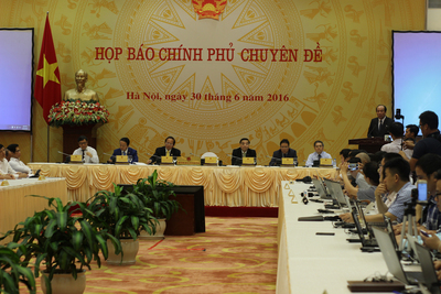 越南河靜省當局舉行記者會,公布魚群死亡原因。(資料照片,中央社)