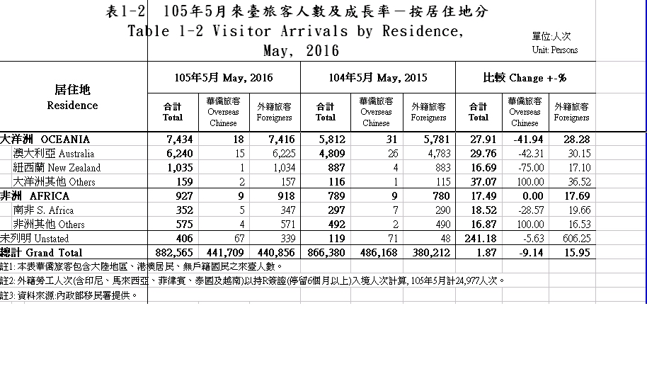5月來台旅客人數概況(資料來源:觀光局)