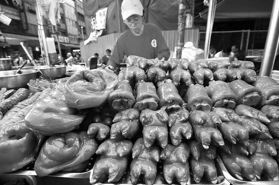 這店家,把自家滷的豬蹄膀,堆疊出一種美麗的層次,再加上那一片油滋滋的視覺美感,對一個沒有夜市文化的外國人來說,那真的會吸引不少好奇的目光。