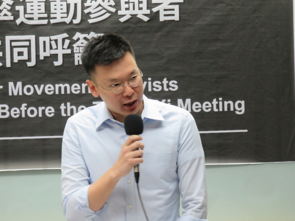 他說,「當然目前對於雨傘運動的參與者,事後在整個刑法行為上的追訴,還沒有進入法院審理的階段,但是我們還是衷心期盼,香港的法院能發揮中心獨立、司法自主的精神,在接下來的司法程序當中,透過正當的法律程序,讓運動的參與者能非常清楚闡釋,在運動過程中所抱持的理念和行動的理由,這不只是香港人民或參與行動者問題,這是值得大家共同關注,共同聲援的事情」。
